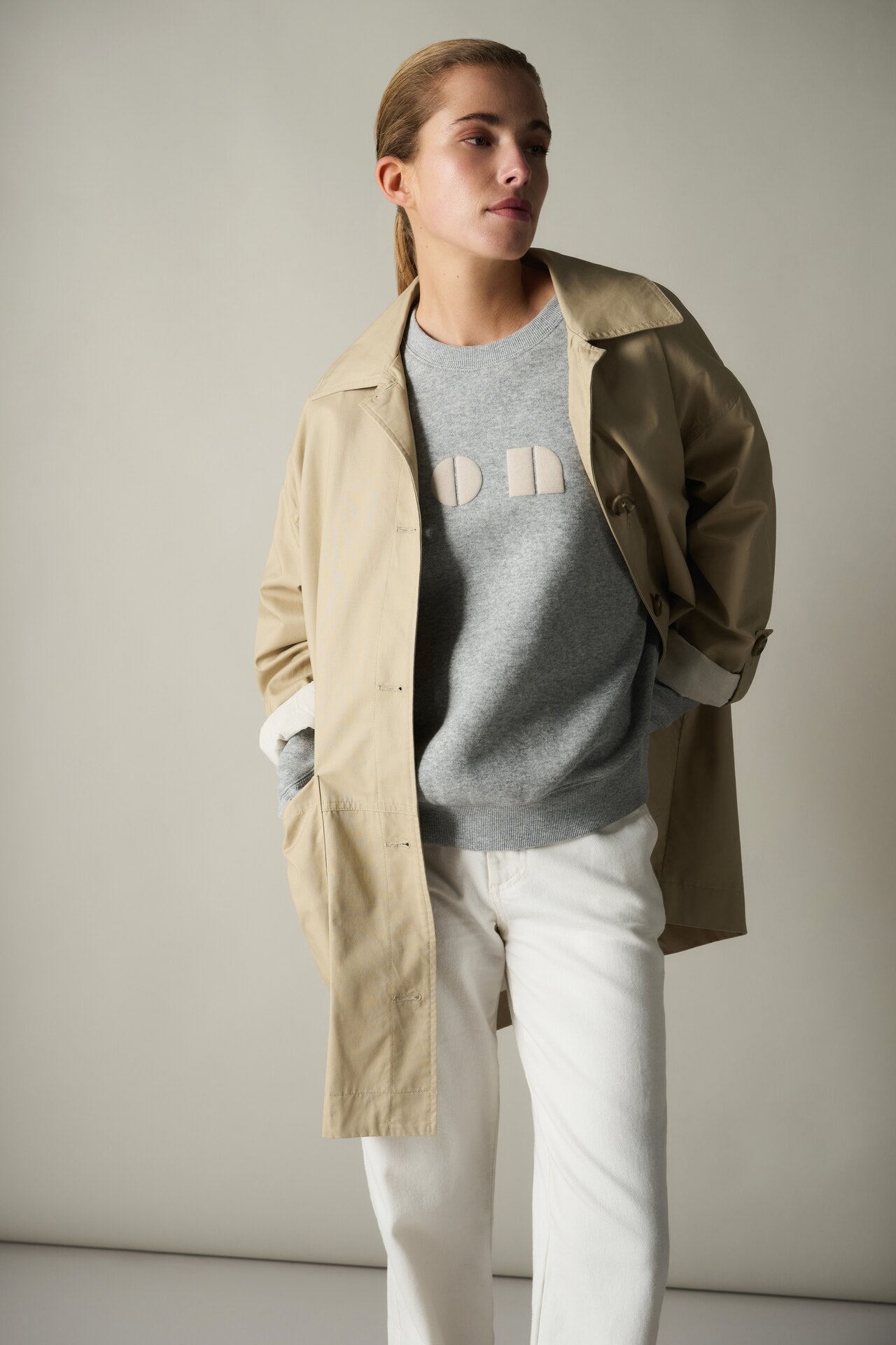 This month, our collection arrives with a soft take on utility. Picture the laid-back elegance of cargo, reimagined in a feminine and flowy way. Airy silhouettes and unique construction details, like asymmetric closures, give every piece a playful twist. Stylish sandy and beige tones are brightened by peach, touches of green and light blue, hinting at those summery days that are just around the corner.