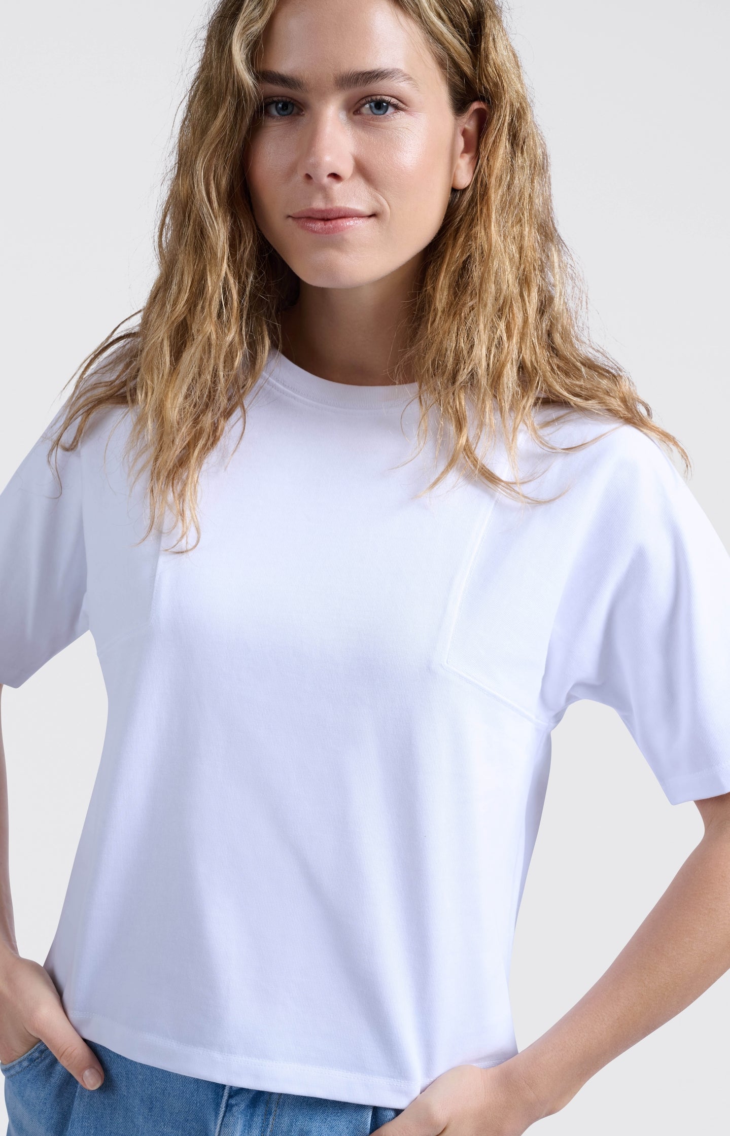 Dieses stylishe T-Shirt aus einer schweren, weichen Baumwollmischung ist in lockerer Passform geschnitten. Der Rundhalsausschnitt und die halblangen Ärmel sorgen für einen zeitlosen Look, und die dezenten Nahtdetails verleihen dem T-Shirt eine raffinierte Note. Es ist vielseitig und kann sowohl mit legeren als auch mit eleganten Outfits kombiniert werden. Das Model ist 178 cm groß und trägt Größe S.