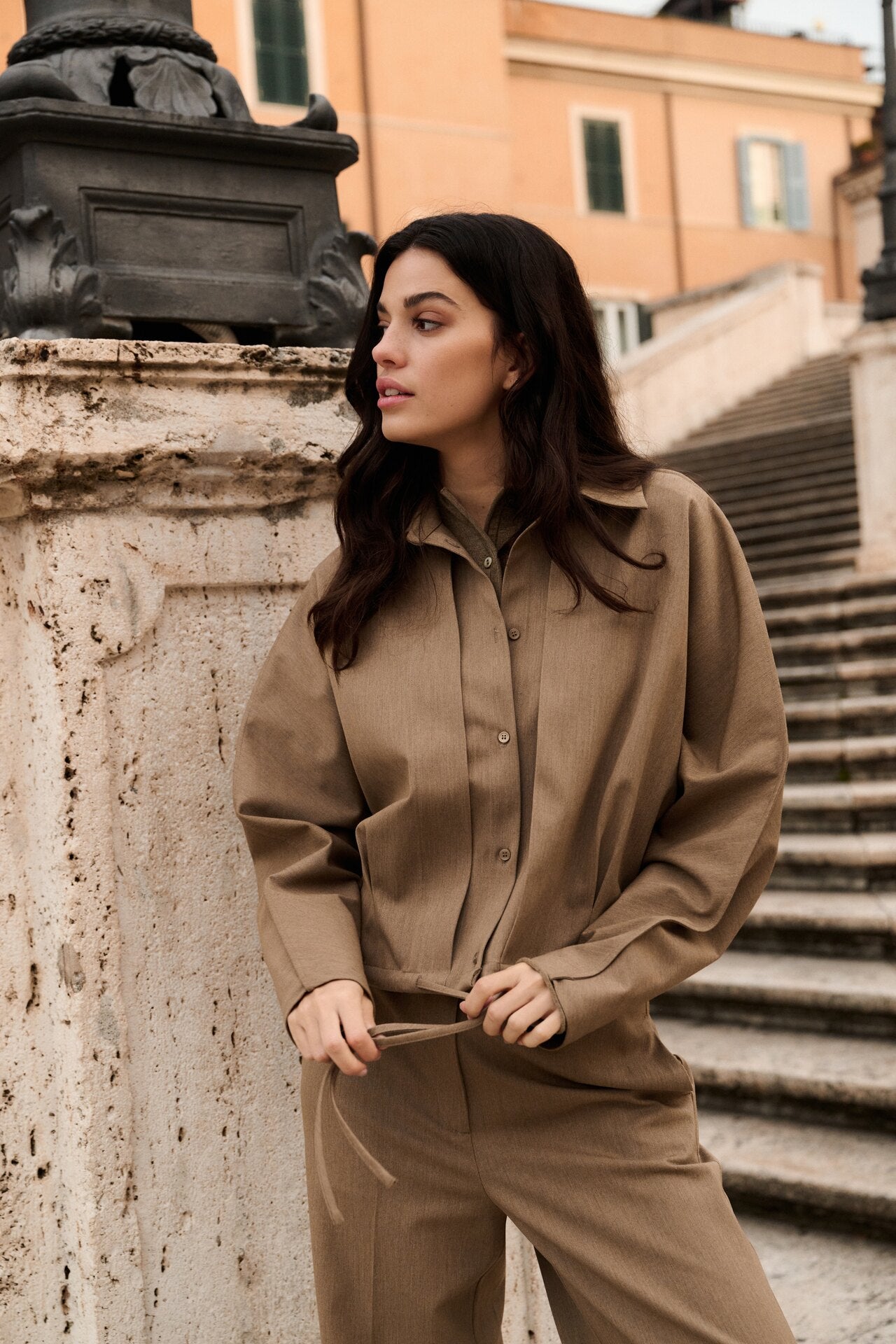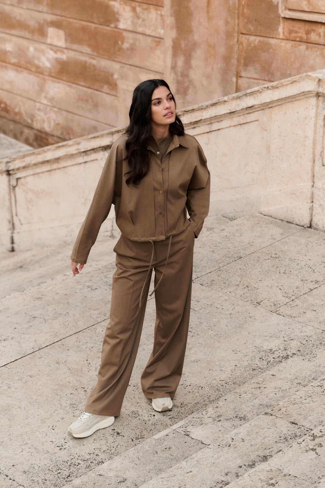 Want to create a flattering silhouette? Try combining several brown shades in one outfit. A darker bottom with a slightly lighter top creates a vertical line that adds calm and length to your look. The right brown tones help express both your personal style and figure beautifully.