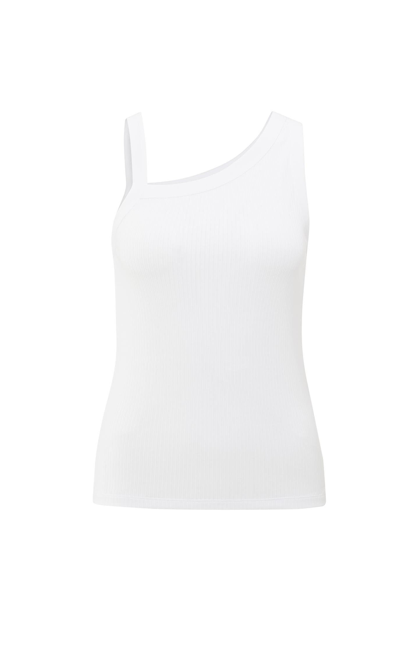Ce débardeur fait à partir d'un doux mélange de coton a une texture côtelée. Il a une encolure asymétrique et de larges bretelles qui créent un look moderne et féminin. La coupe cintrée fait que la pièce peut aussi bien se porter seule que sous un blazer ou un cardigan. Un essentiel élégant pour toutes les garde-robes chics et décontractées. Le mannequin mesure 178 cm et porte une taille S.