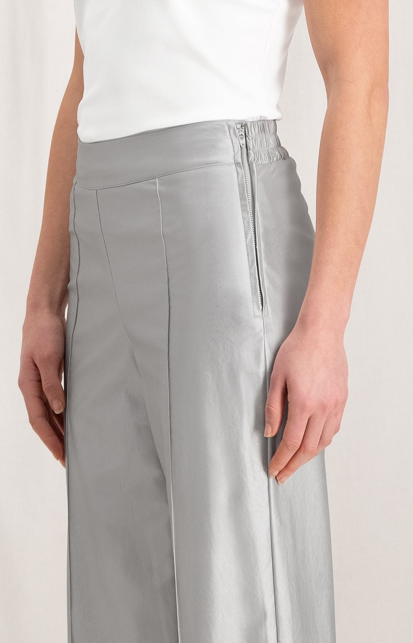 Pantalon métallisé en simili cuir, coupe large avec zip