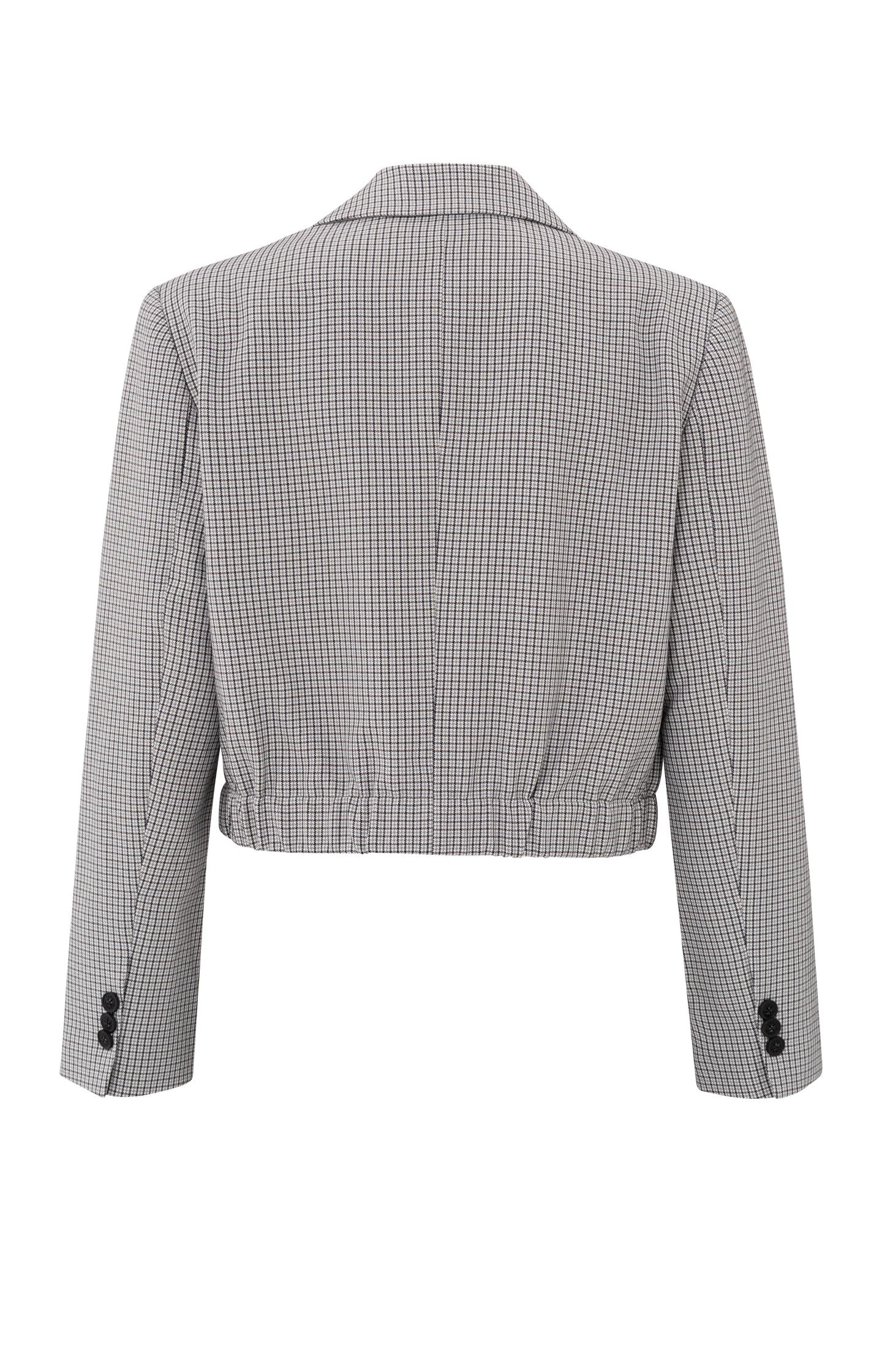 Blazer court à carreaux et taille élastique