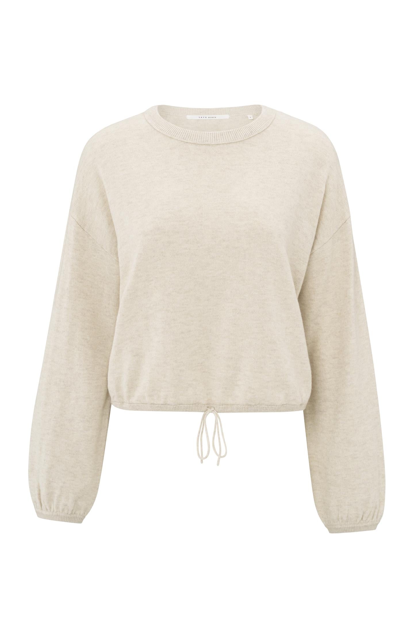Ce pull doux présente une encolure ronde, des manches longues et un ourlet avec cordons vous permettant d'ajuster la coupe. Avec sa coupe ample et son tissu léger, il est aussi confortable que polyvalent. Portez-le avec un pantalon ou une jupe pour un look chic et décontracté. Le modèle mesure 173 cm et porte une taille S.
