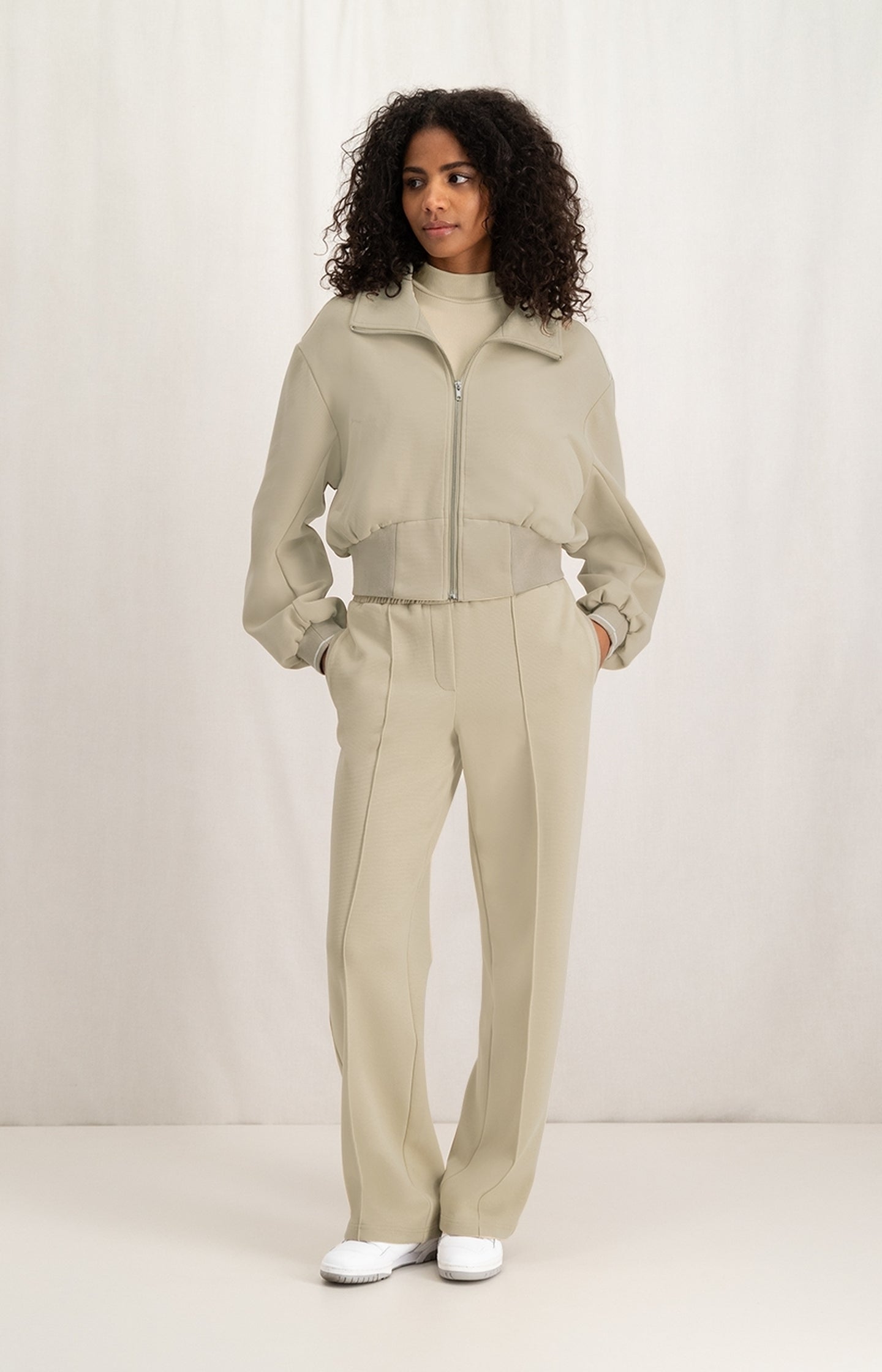 Jersey broek met wijde pijpen, een elastische taille en handige steekzakken. De broek is afgewerkt met naaddetails en detail op de achterkant. Ons model is 176cm en draagt een maat 36.