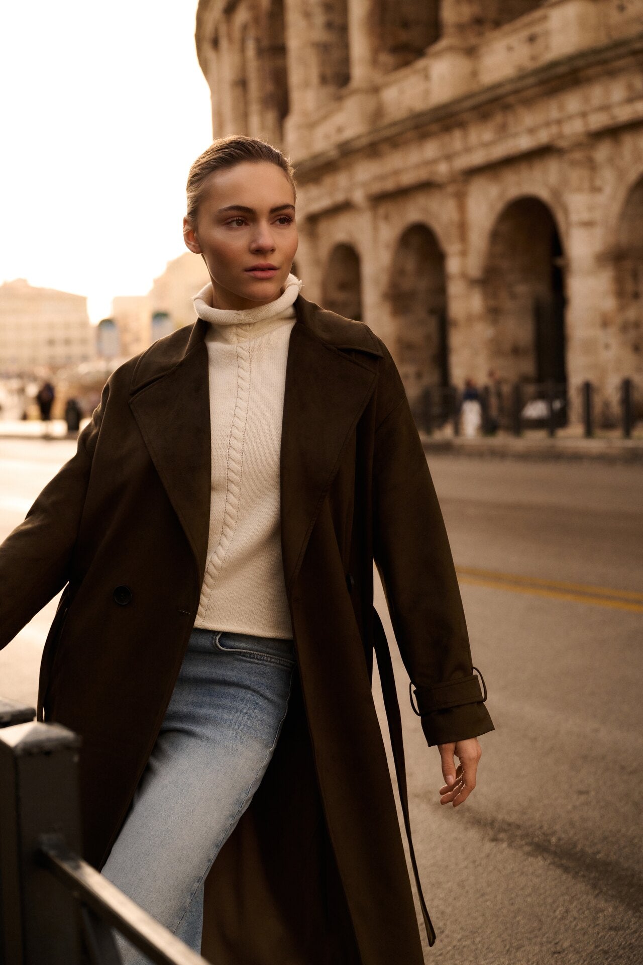 This airy blouse features a classic collar, long cuffed sleeves, and an oversized fit. The fine vertical stripes are playfully interrupted at the back by a diagonal yoke detail. A chest pocket and hip-length cut add to its casual look. Perfect for creating a stylish, relaxed outfit. The model is 175 cm and wears size 36.